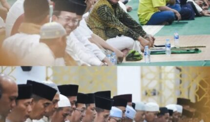 Bupati Suhardiman Amby Bersama Jajaran Pemerintahan Kuansing Laksanakan Sholat Taraweh Pertama di Masjid Agung Ar Raudah