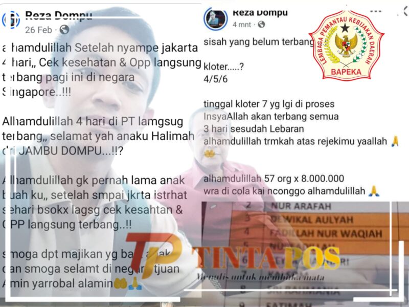 Kota Bima ,NTB //TintaPos.Com// – Sekretaris Jenderal (Sekjen) Lembaga Pemantau Kebijakan Daerah (BAPEKA) Nusa Tenggara Barat (NTB), Adim, memberikan tanggapan terkait kasus yang tengah ramai diperbincangkan di media sosial mengenai dugaan penipuan yang dilakukan oleh R-D, sekaligus mengungkapkan apa kaitannya dengan Kantor Imigrasi Kelas IIB Bima.