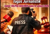 Jakarta //TintaPos.Com// — Mahkamah Konstitusi (MK) memperkuat perlindungan hukum terhadap wartawan melalui Putusan Nomor 145/PUU-XXIII/2025 terkait uji materi Pasal 8 Undang-Undang Nomor 40 Tahun…