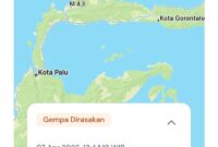 TOLITOLI, //Tintapos.com// – Gempa bumi dengan kekuatan magnitudo 4,3 mengguncang wilayah Tolitoli pada Senin, 7 April 2026, sekitar pukul 14.44 WITA. Getaran gempa dilaporkan…