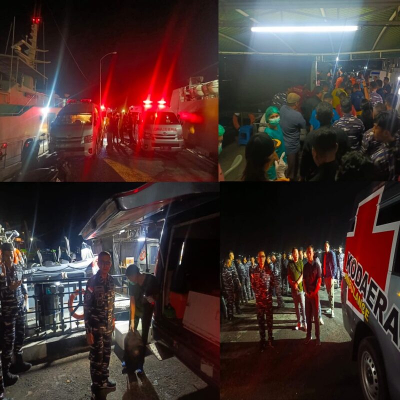 Total korban dalam insiden ini berjumlah lima orang. Satu korban sudah lebih dulu dirujuk ke RS Prof. Kandouw di Manado, sementara empat lainnya dievakuasi melalui Dermaga Satrol Kodaeral VIII Bitung untuk penanganan lanjutan.”