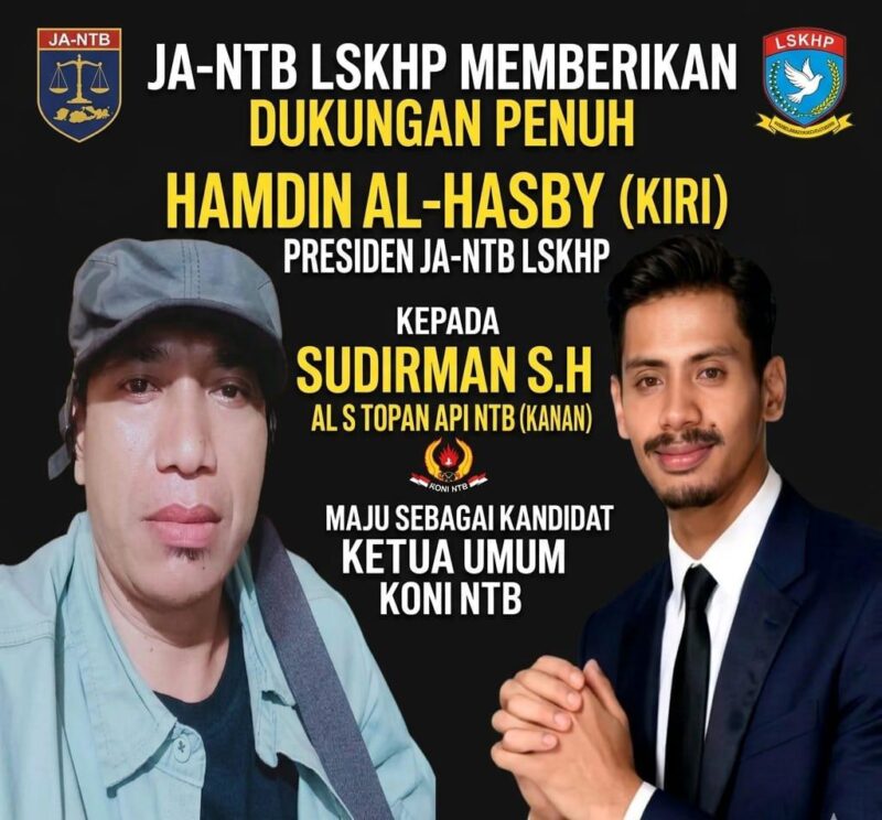Bima //TintaPos.Com// – Hamdin Al-Hasby, Presiden JA-NTB LSKHP, secara resmi menyatakan dukungan penuh kepada Sudirman, yang akrab disapa Topan, untuk maju sebagai Ketua Umum KONI Kabupaten Bima. Dukungan ini disampaikan sebagai bentuk komitmen dalam mendorong kemajuan olahraga daerah serta memperkuat tata kelola organisasi yang profesional dan berintegritas.