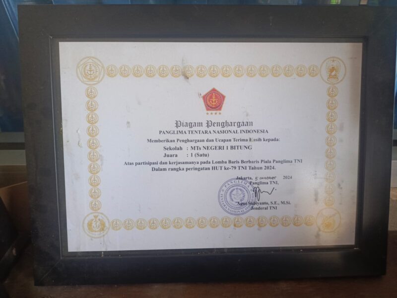 MTS Negeri 1 Negeri Kota Bitung berhasil menyabet juara 1 tingkat Nasional sekaligus menunjukkan kualitas disiplin tinggi para siswa.