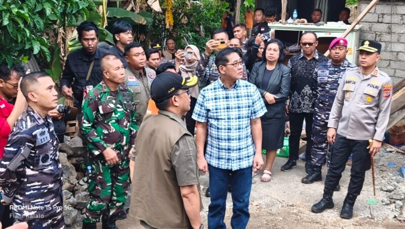 Kapolres Bitung AKBP Albert Zai, S.I.K., M.H. turut bersama Wali Kota Bitung Hengky Honandar dan jajaran Forkopimda mendampingi kunjungan kerja BNPB yang diwakili oleh Dr. Abdul Muhari di Kelurahan Manembo-nembo Tengah, Kecamatan Matuari.