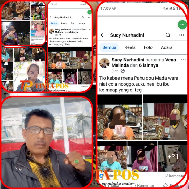 Pada postingan akun bernama Sucy Nurhadini (teridentifikasi terkait dengan Suci Nurhaidah) yang telah dibagikan luas, terlihat minimal 4 foto perempuan yang memegang uang tunai, dengan catatan “maap yang di teg”. Tindakan mempublikasikan foto korban semacam ini termasuk bentuk tekanan dan pelecehan yang melanggar hak-hak pribadi serta martabat individu. Informasi dari lapangan menunjukkan kasus serupa telah banyak terjadi di berbagai kecamatan di Kota Bima, khususnya di wilayah pusat aktivitas ekonomi rakyat kecil, dengan Suci Nurhaidah sebagai pihak yang mengelola praktik pinjaman ilegal tersebut.