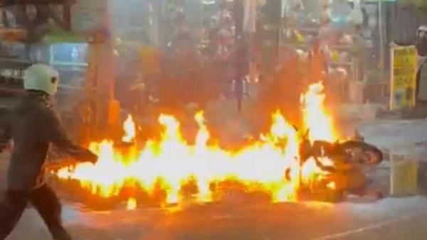 “Saat itu, muncul percikan api dari motornya yang kemudian menyebabkan seluruh sepeda motor terbakar,” ujarnya.