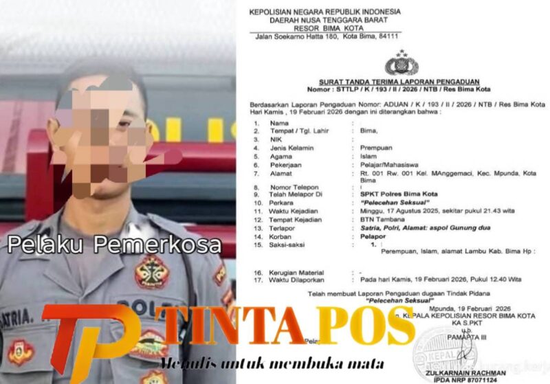 Kota Bima NTB //TintaPos.Com// – 19 Februari 2026 – Kepolisian Resor (Polres) Bima Kota kembali menjadi sorotan tajam usai menerima laporan pengaduan dugaan tindak pidana pemerkosaan yang dilakukan oleh salah satu anggotanya. Hal ini semakin memperparah citra institusi yang sebelumnya juga dikaitkan dengan kasus bandar narkoba yang melibatkan Kapolres, sehingga muncul anggapan bahwa “mulai dari Kapolres sampai dengan personilnya tidak ada yang bersih”.