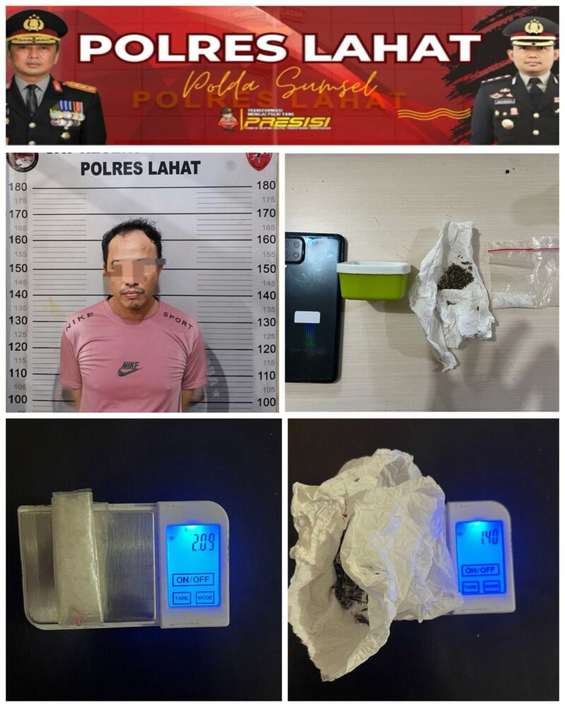 Lahat //TintaPos.Com// — Polres Lahat melalui Satuan Reserse Narkoba kembali menunjukkan komitmennya dalam memberantas peredaran narkotika dengan mengungkap kasus pengedar dua jenis narkoba sekaligus, yakni sabu dan ganja, di kawasan Perumnas 2, Jalan Mawar, Kelurahan Bandar Jaya, Kecamatan Lahat, Kabupaten Lahat, Rabu malam, 8 April 2026, sekitar pukul 22.00 WIB.
