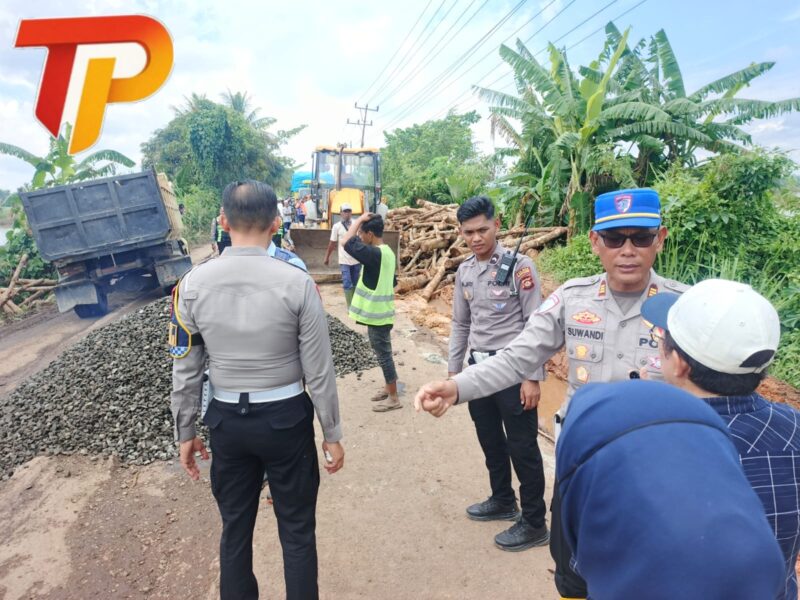 Banyuasin //TintaPos.Com// — Polres Banyuasin bersama Pemerintah Kabupaten Banyuasin melalui Kecamatan Rambutan, TNI, dan pelaku usaha melaksanakan perbaikan darurat jalan rusak di Jalan Sungai Dua, Kecamatan Rambutan, Rabu (22/4/2026). Kegiatan ini merupakan tindak lanjut atas keluhan warga yang disampaikan saat sambang kamtibmas Kapolres Banyuasin di Polsek Rambutan, Senin (20/4/2026).