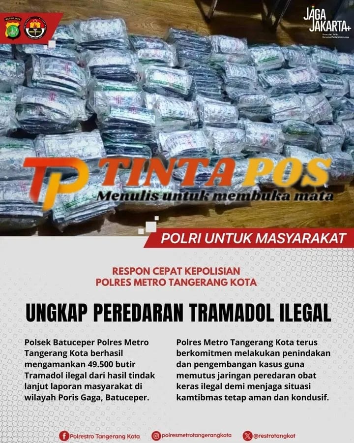 Tangerang Indonesia //TintaPos.Com// – Jajaran Unit Reskrim Polsek Batuceper Polres Metro Tangerang Kota berhasil mengungkap dugaan tindak pidana peredaran sediaan farmasi ilegal berupa obat keras jenis Tramadol dalam jumlah besar. Pengungkapan ini merupakan bagian dari upaya kepolisian menekan peredaran obat-obatan terlarang yang membahayakan kesehatan masyarakat. Minggu (8/2/2026).