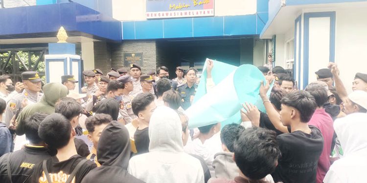 Puluhan aktivis yang tergabung dalam Lingkar Melati Bersatu Kabupaten Pamekasan menggelar aksi demonstrasi di Kantor Bea Cukai Madura, Senin, 23 Februari 2026.