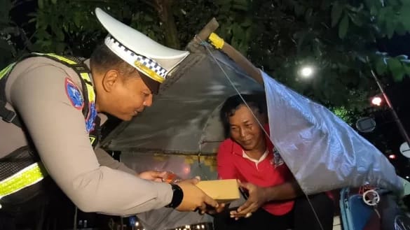Banyuwangi,//Tintapos// – Satuan Lalu Lintas (Satlantas) Polresta Banyuwangi menggelar program Sahur on the Road. Kegiatan ini dilaksanakan di sejumlah titik strategis di wilayah Kota Banyuwangi. Petugas membagikan paket sahur sekaligus memberikan edukasi tertib berlalu lintas kepada masyarakat.