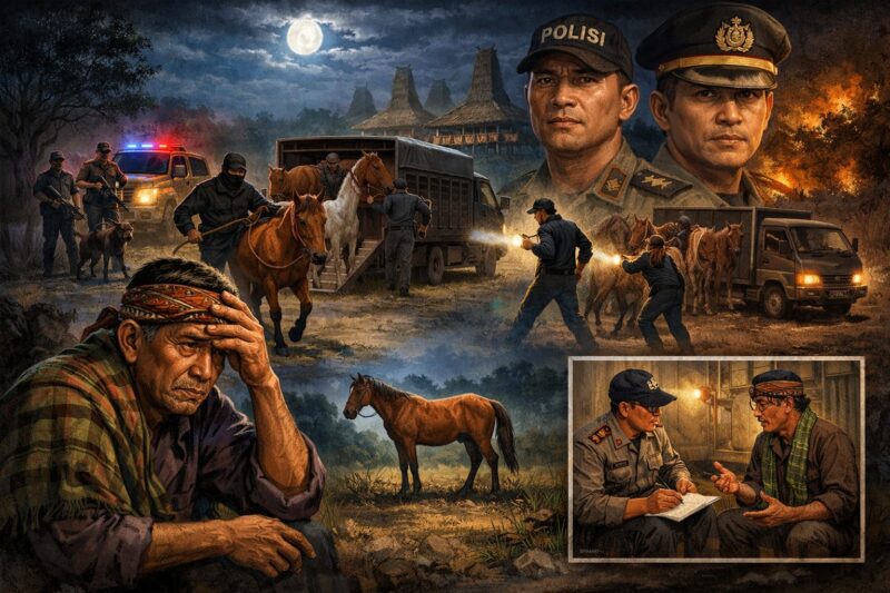 SUMBA TIMUR //tintapos.Com// – Maraknya kasus pencurian ternak besar seperti kuda, kerbau, dan sapi di wilayah Kecamatan Lewa, Kabupaten Sumba Timur, kini semakin meresahkan masyarakat. Aksi pencurian yang diduga dilakukan oleh kelompok terorganisir atau sindikat pencuri ternak ini menimbulkan kekhawatiran bagi para peternak yang menggantungkan hidupnya dari usaha ternak.
