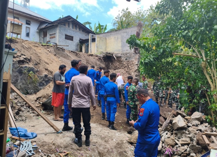 Menindaklanjuti laporan tersebut, Personil Ditpolairud Polda Sulut bergerak cepat menuju lokasi untuk melakukan evakuasi material bangunan serta memastikan tidak ada warga yang terjebak di dalam reruntuhan.