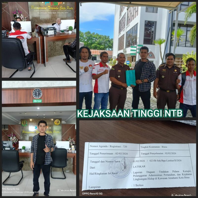 Kota Bima //Tintapos.Com// – 07 Februari 2026, sabtu, mengusut duga’an kejahatan Pertanahan di Kawasan Amahami untuk kegiatan proyek kolam retensi bagian dari program National Urban Flood Resilience Program (NUFReP) yang didanai Bank Dunia resmi dilaporkan ke Kejaksaan Tinggi (Kejati) Nusa Tenggara Barat Oleh Lembaga Transparansi dan kebijakan Anti Korupsi (LATSKAR)