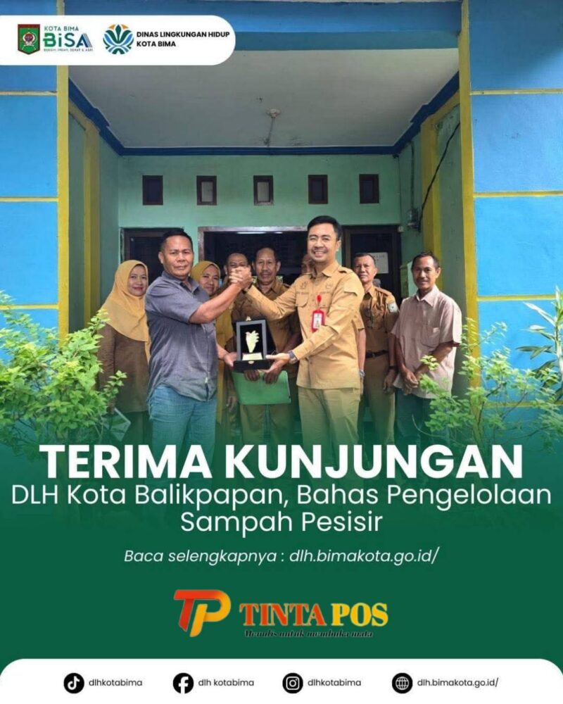 Kota Bima,NTB //TintaPos.Com// – 17 MARET 2026 – Akhirnya! Kota Bima mendapatkan kesempatan belajar langsung dari yang terbaik! Kepala Dinas Lingkungan Hidup (DLH) Kota Bima, Syahrial Nuryadin, S.IP., M.M. (akrab disapa Rian), resmi menerima kunjungan tim ahli dari DLH Kota Balikpapan – yang baru saja jadi RANKING 2 TERBAIK SE-INDONESIA dalam pengelolaan sampah tahun 2025 – untuk berbagi rahasia sukses membuat pantai bersih dan lingkungan sehat!