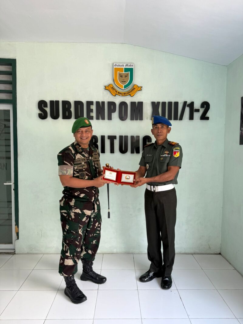 Bitung //TintaPos.Com// – Dalam upaya mempererat koordinasi dan meningkatkan kualitas disiplin di lingkungan TNI Angkatan Darat, Komandan Dodik Secata Rindam XIII/Merdeka, Letkol Inf Ade Rohmat Wahyudi, S.IP., M.H.I., M.Sc., melakukan kunjungan silaturahmi ke Sub Detasemen Polisi Militer (Subdenpom) XIII/1-2 Bitung.